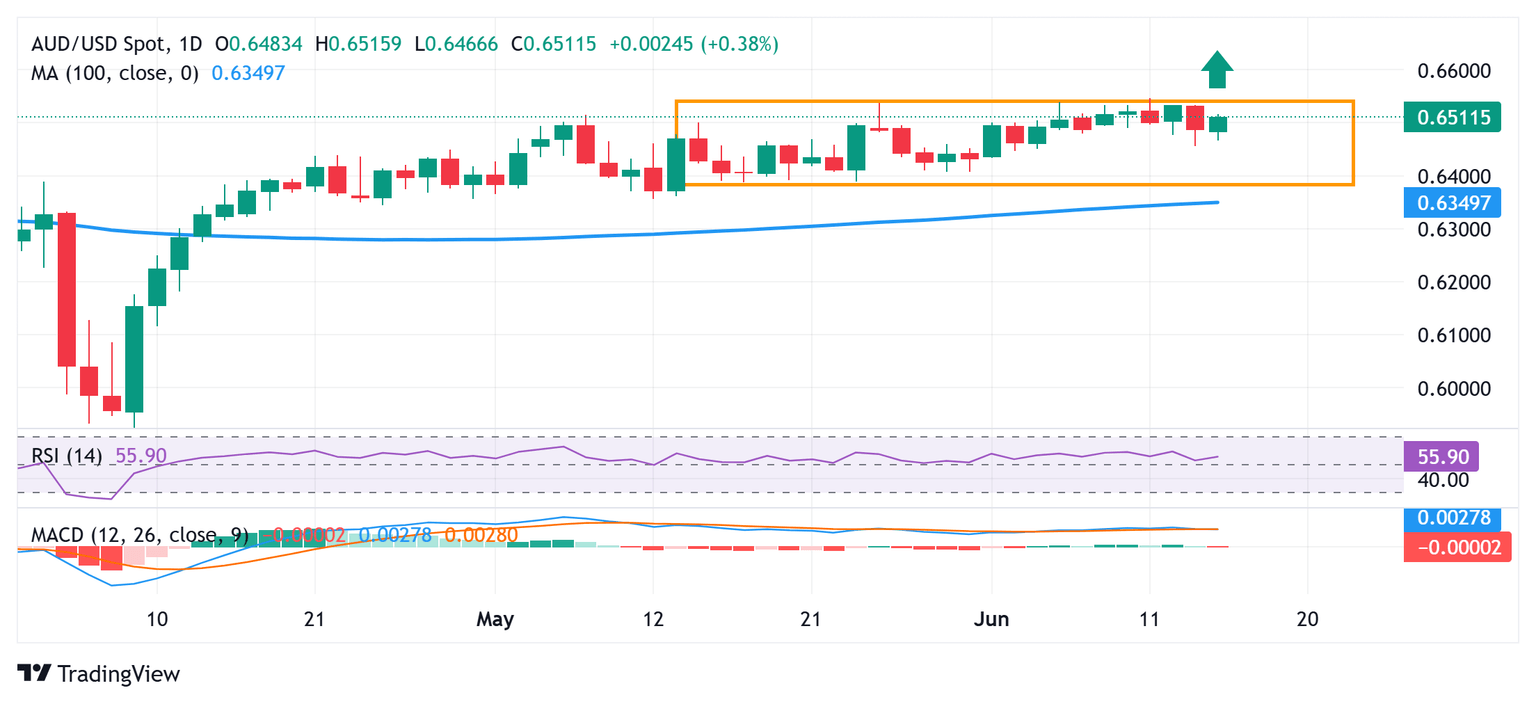 From a technical perspective, positive oscillators on the daily chart back the case for additional gains and an eventual bullish breakout through a multi-week-old trading range hurdle, around the 0.6545 region. The said area represents the year-to-date peak touched earlier this month, above which the AUD/USD pair could aim to reclaim the 0.6600 mark. The momentum could extend further towards the 0.6640 hurdle and the 0.6680 region, or November 2024 swing high.