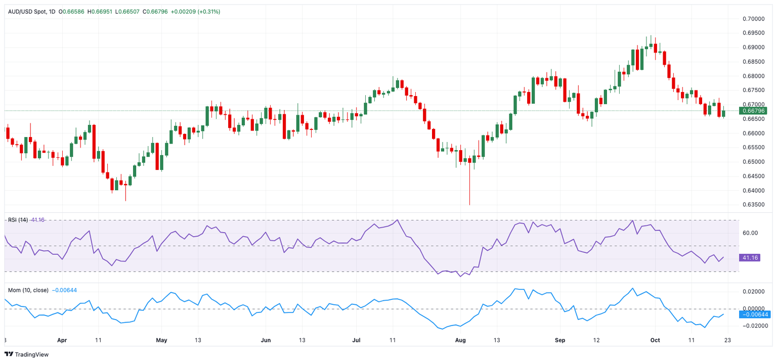 - AUD/USD managed to rebound modestly and flirt with 0.6700.