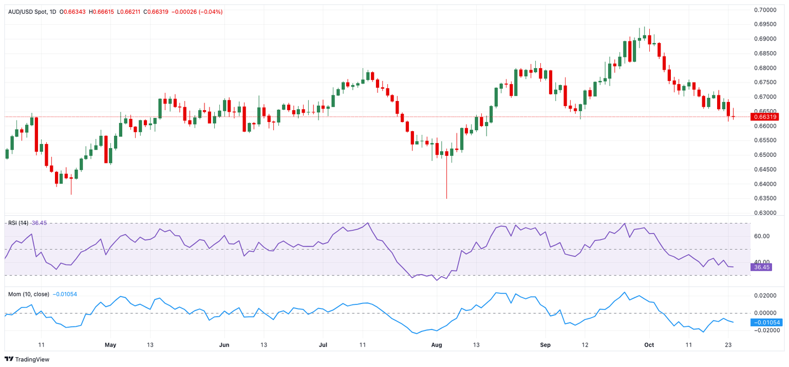 - AUD/USD remained under persistent pressure in the low 0.6600s.