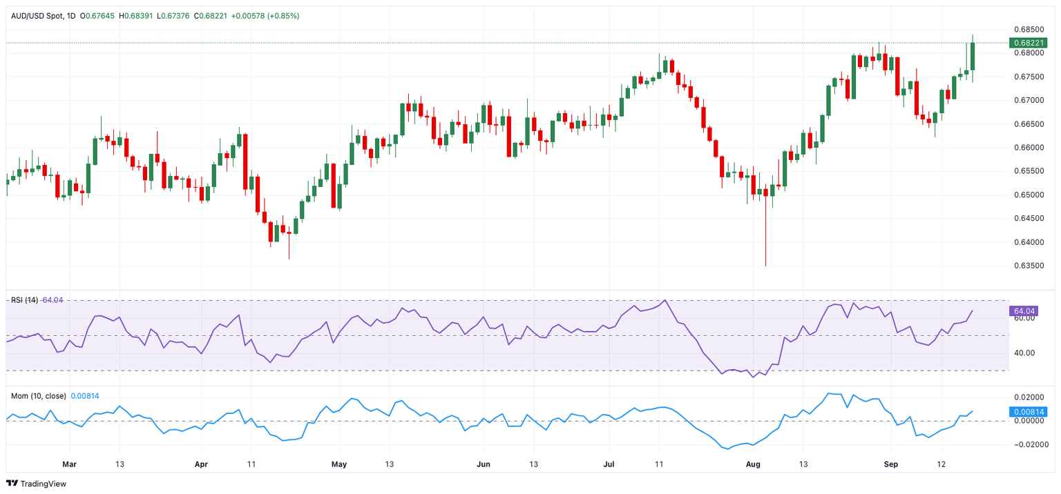 On Thursday, increased post-Fed selling interest in the US dollar (USD) provided additional support for risk-related assets, allowing AUD/USD to continue its bullish momentum for the fourth consecutive day and hit fresh 2024 peaks near 0.6840l.