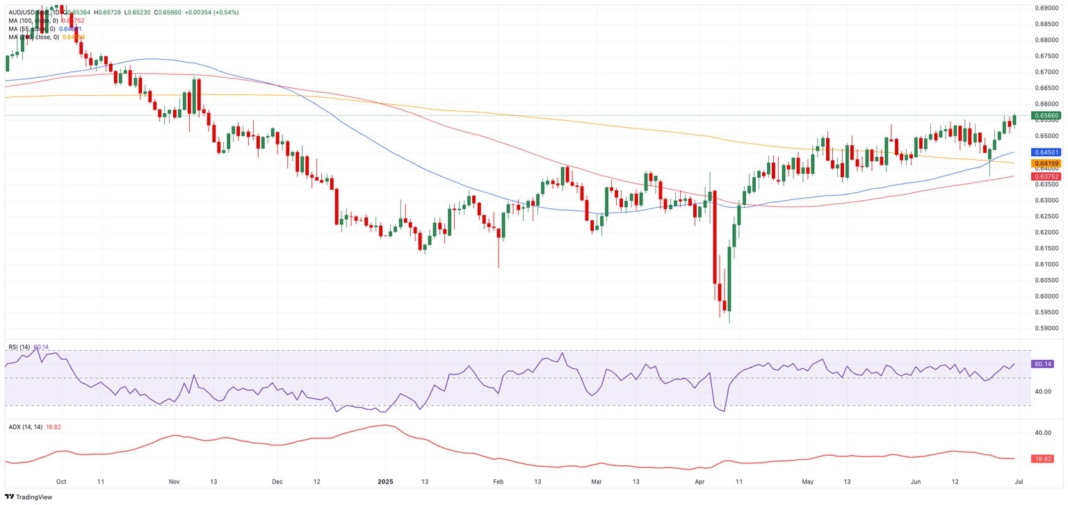 - AUD/USD climbed to fresh 2025 tops around 0.6570 on Monday.