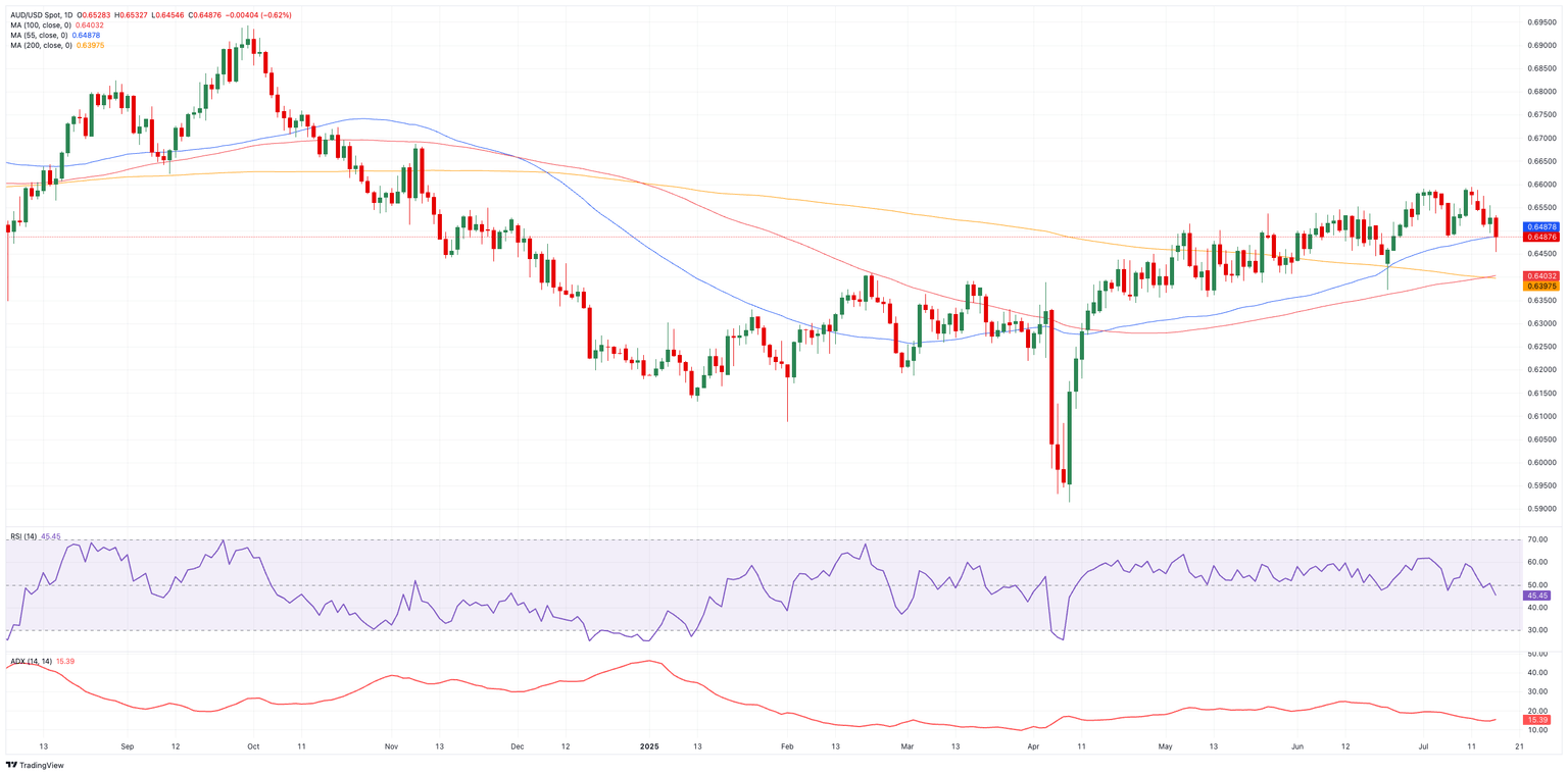 Southwards, the July base of 0.6454 (July 17) offers initial support, ahead of the 200‑day SMA at 0.6401.