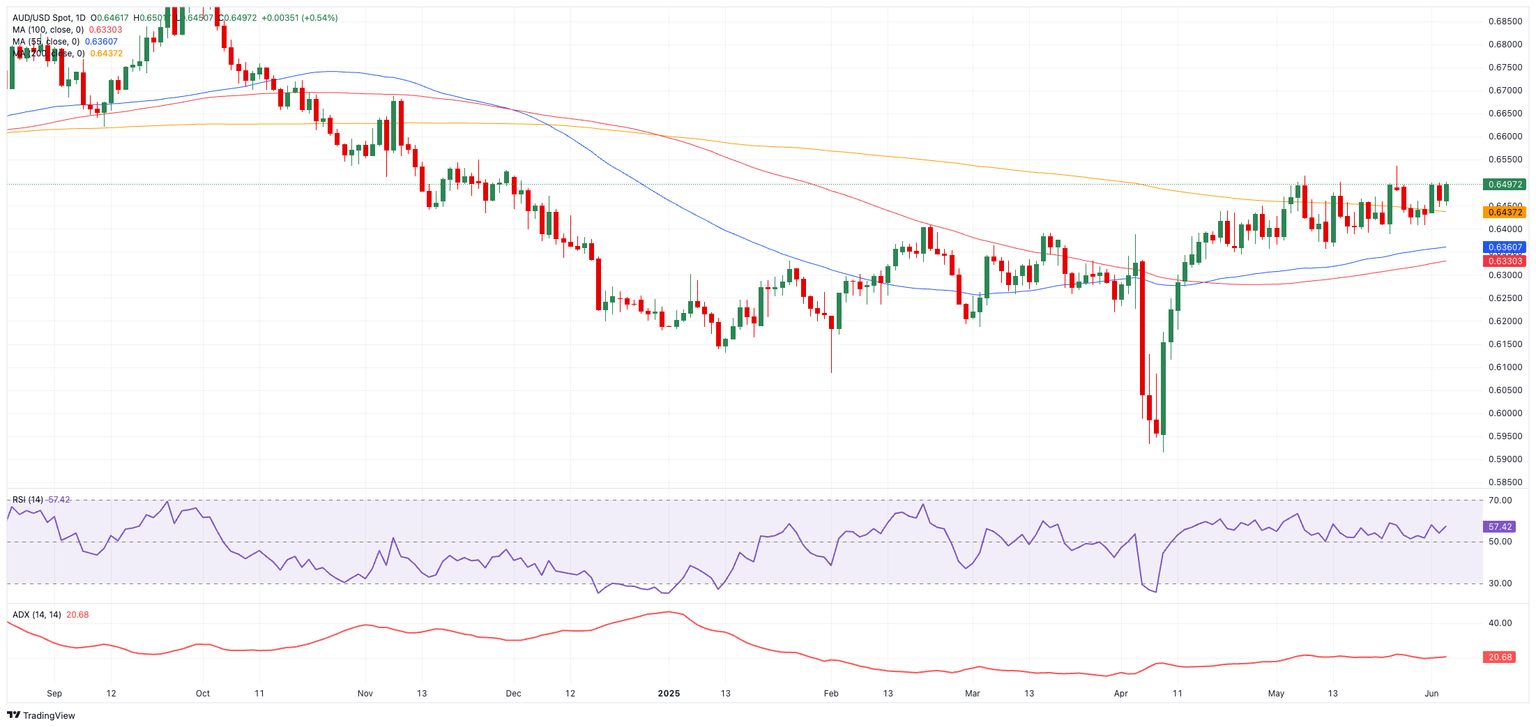 If AUD/USD breaks above its 2025 high of 0.6537 (May 26), it could next target the November 2024 peak at 0.6687, and possibly the 2024 high of 0.6942.