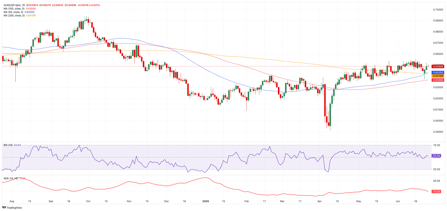 On the daily charts, immediate resistance sits at the YTD peak of 0.6551 (June 16). A decisive break above that could see the pair challenge November 2024 high at 0.6687 (November 7) and the 2024 ceiling at 0.6942, all preceding the psychological hurdle at 0.7000.
