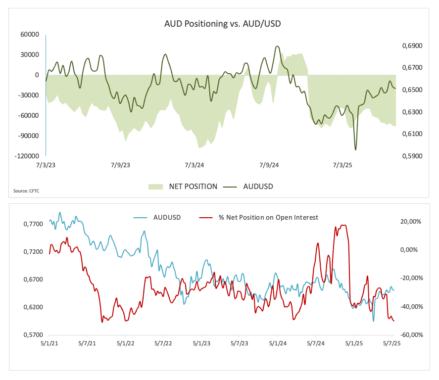 Investor sentiment toward the Aussie has worsened. As of the week ending July 15, speculators ramped up their bearish wagers after net short positions climbed to around 75K contracts, with overall open interest shrinking to nearly 150.5K contracts, marking a four‑week trough.