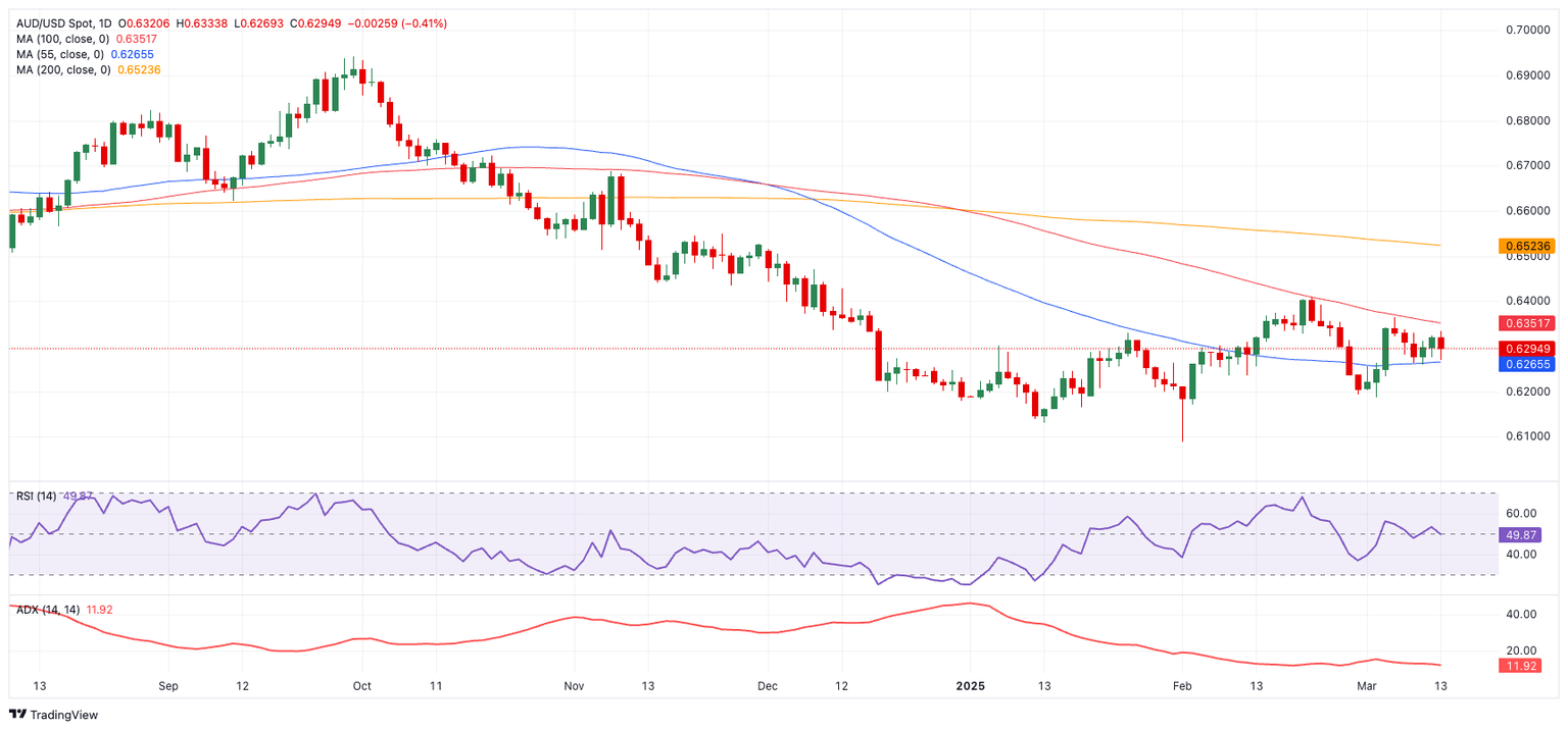 A push above the March high of 0.6363 (reached on March 6) would target the 2025 top at 0.6408 (February 21). Breaking past that could pave the way to the 200-day Simple Moving Average (SMA) at 0.6527.