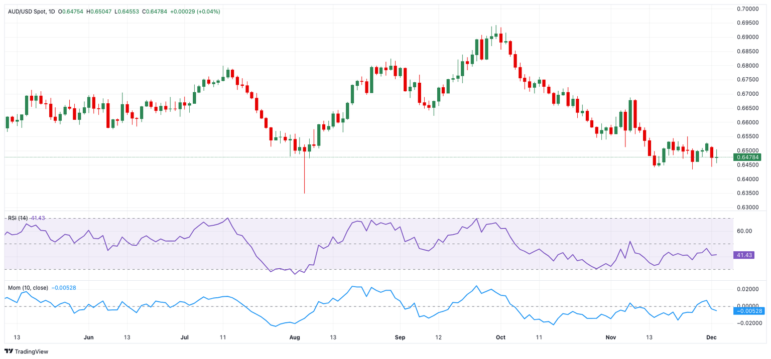 On the technical front, the AUD/USD faces resistance at 0.6549 (the weekly high from November 25), followed by the 200-day Simple Moving Average (SMA) at 0.6626. If bullish momentum builds, the pair could challenge November’s peak of 0.6687, set on November 7.