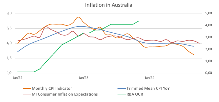 - Australian inflation figures showed further loss of momentum.