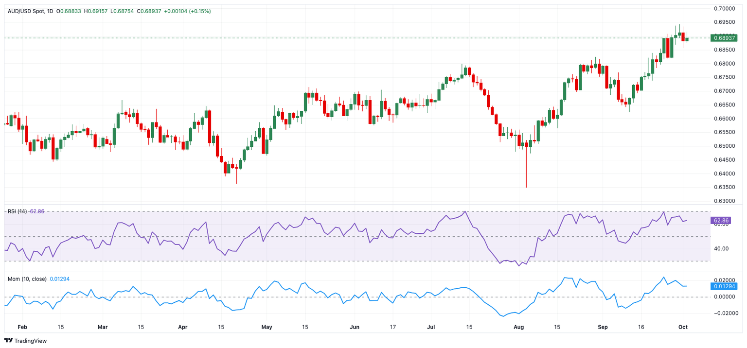Further upside could see AUD/USD retest its 2024 peak of 0.6942 (September 30) before challenging the critical 0.7000 level.