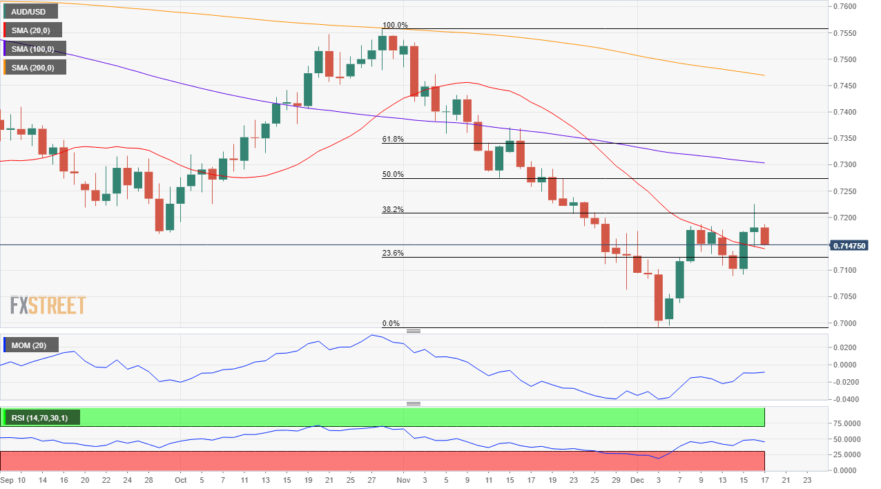 - AUD/USD lost momentum heading into the weekend, critical support at 0.7125.
