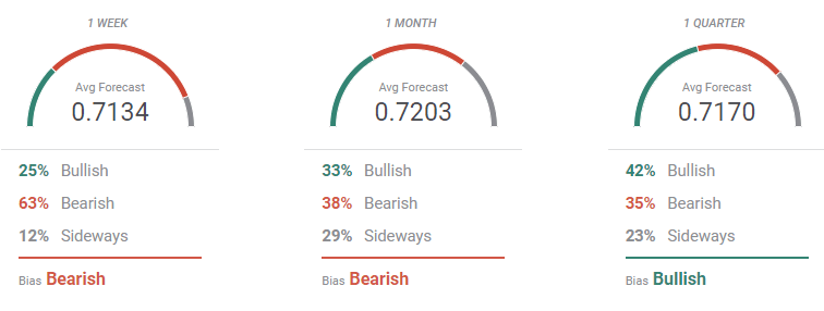 The FXStreet Forecast Poll suggest AUD/USD will likely resume its decline during the upcoming weeks. Bears are a majority in the weekly and monthly perspectives, although bulls take over in the quarterly view. However, those seeing the pair ranging are a large proportion of the polled experts in the longer-term views. On average, the pair is seen above 0.7000.