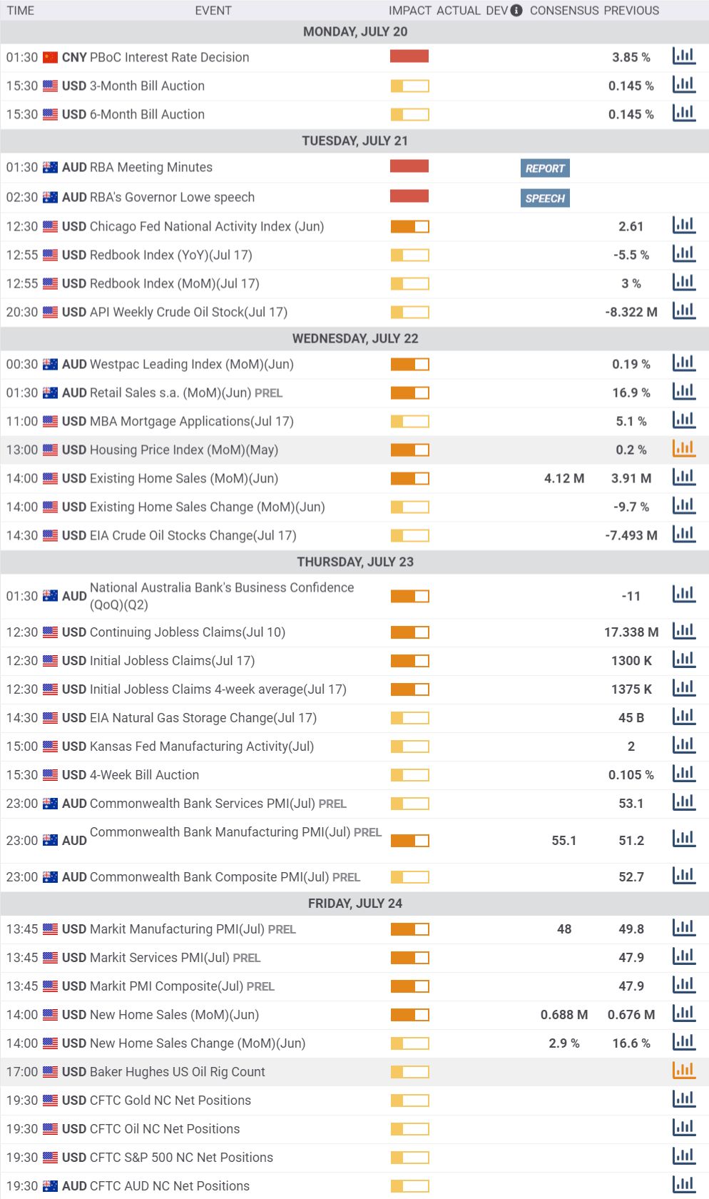 Tensions between the US and China also had an impact on the AUD. This past week, US President Trump signed the Hong Kong autonomy act, putting an end to trade preferences with the region after China established a new security law. Also, the US government was said to be studying a travel ban on Chinese members of the Communist Party, something like 90 million people.