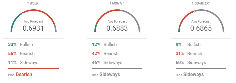 According to the FXStreet Forecast Poll, the AUD/USD pair is seen slowly grinding lower over the next few weeks, although the average targets in the three time-frame under study stand around 0.6900, the lower end of the latest range. The pair is seen bearish weekly basis, and neutral in the longer-term perspective, although in all cases, bears surpass those hoping for another leg north.