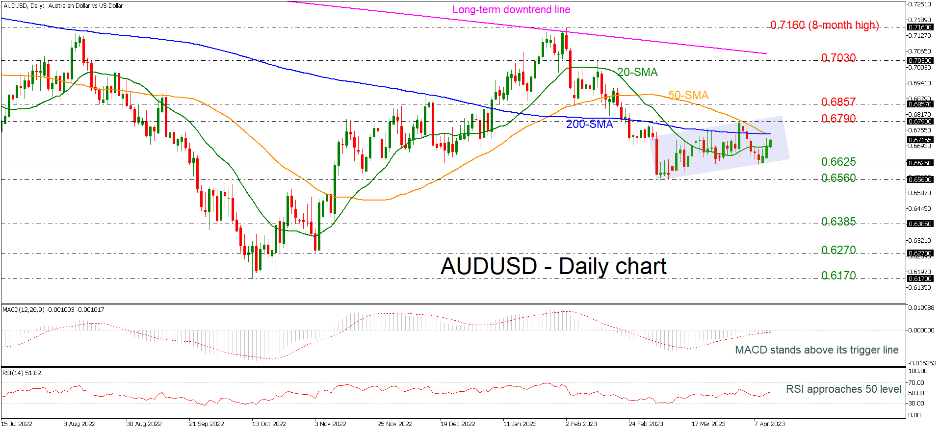 AUDUSD rebounded off the 0.6625 support level, which is also near the lower boundary of the short-term upward sloping channel. Currently, the market is standing above the 20-day simple moving average (SMA) and is approaching a bearish crossover within the 50- and the 200-day SMAs near 0.6740.