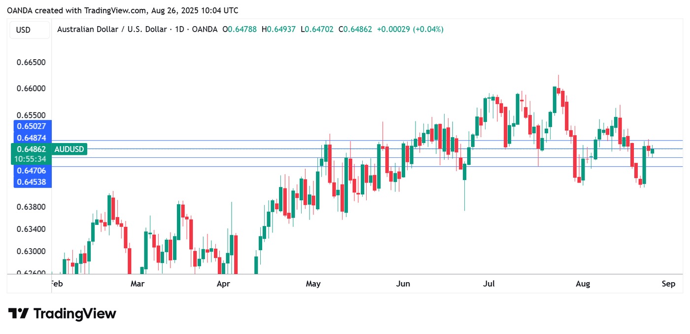 The Australian dollar is showing limited movement on Tuesday. In the European session, AUD/USD is trading at 0.6482, down 0.01% on the day.