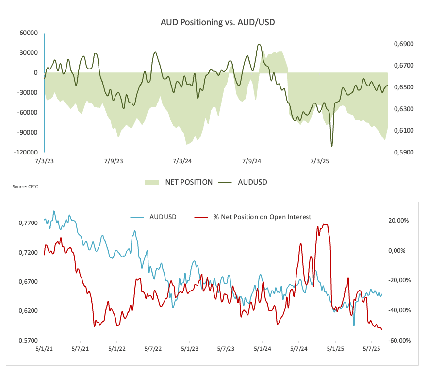 Positioning data suggests traders are still leaning against the Aussie, though less aggressively. Commodity Futures Trading Commission (CFTC) data showed net speculative shorts fell to five-week lows near 82.7K contracts in the week through September 2. Open interest also dropped to three-week troughs just over 185K contracts.