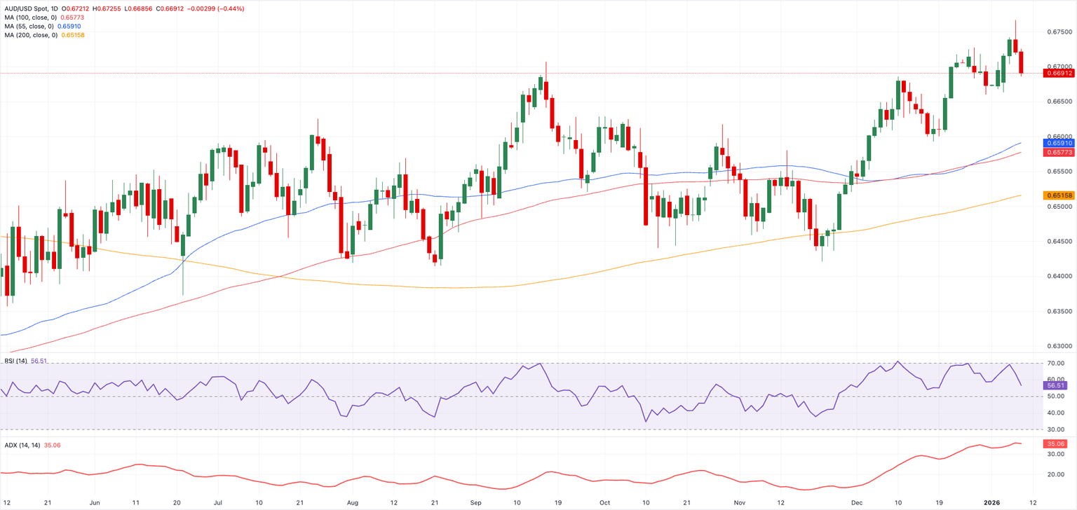 The Aussie Dollar (AUD) comes under renewed pressure on Thursday, with AUD/USD retreating from fresh 15-month highs near 0.6760 to revisit the 0.6680 area in a move that left behind a three-day winning streak, though spot still retains a solid start to the year overall.
