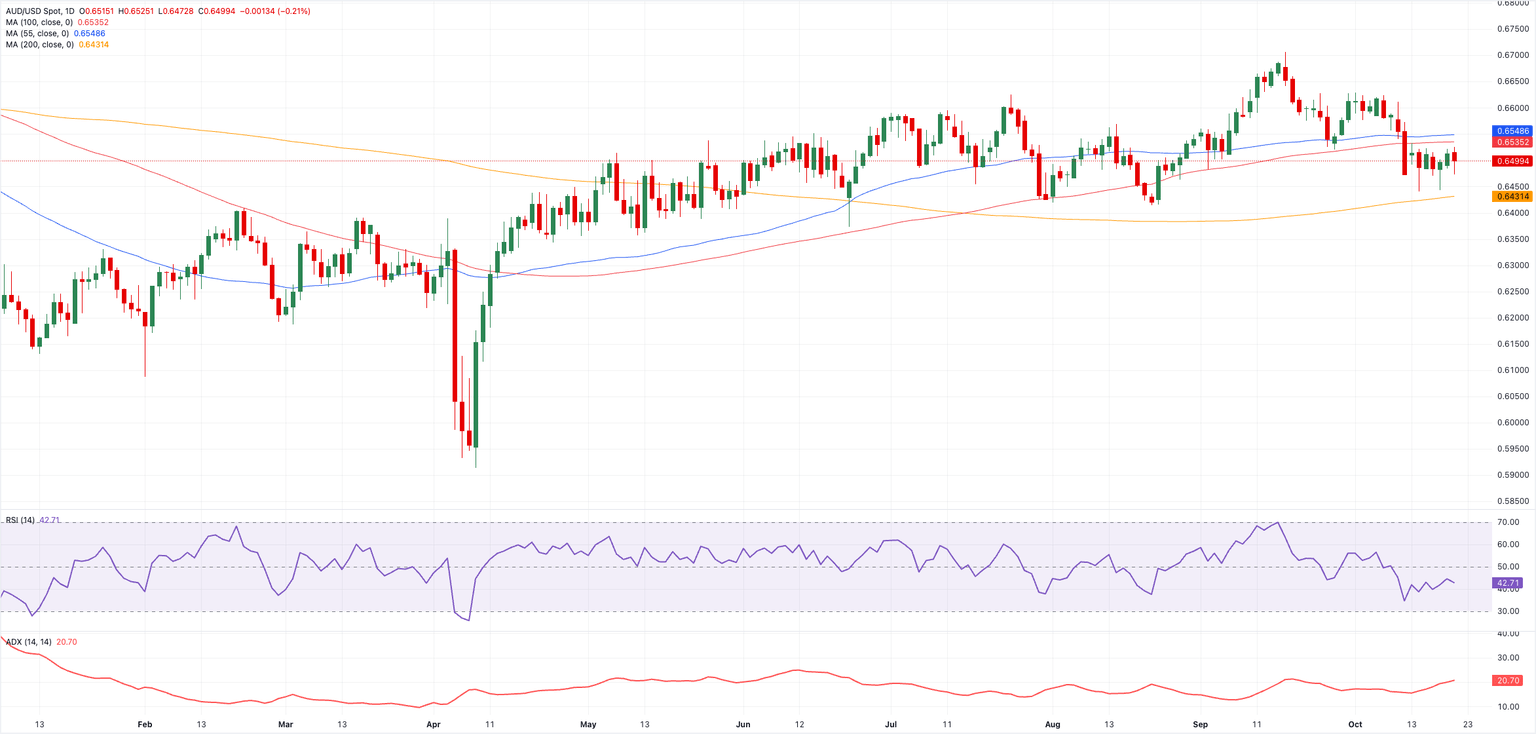 The Australian Dollar (AUD) lost its footing on Tuesday, snapping a two-day winning streak as AUD/USD slipped back below the 0.6500 mark. Sellers stepped in as the US Dollar (USD) found fresh strength, supported by easing US–China trade worries despite growing speculation that the Federal Reserve (Fed) might lean more dovish in the months ahead, remaining well in place.