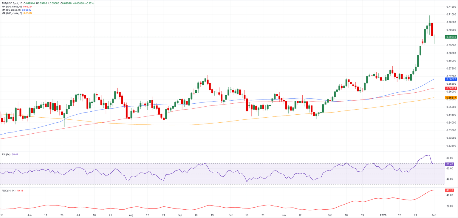 Further correction could prompt AUD/USD to challenge the weekly trough at 0.6908 (February 2), while the breach below this level could put a test of the interim 55-day SMA at 0.6675 back into focus, all ahead of the 2026 bottom at 0.6663 (January 9). Down from here sits, the transitory 100-day SMA at 0.6620, closely followed by the weekly low at 0.6592 (December 18).