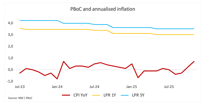 But the People’s Bank of China (PBoC) is taking its time. Loan Prime Rates (LPR) remain unchanged at 3.00% (one-year) and 3.50% (five-year). So China is still helping the Aussie, just not rolling out fireworks.