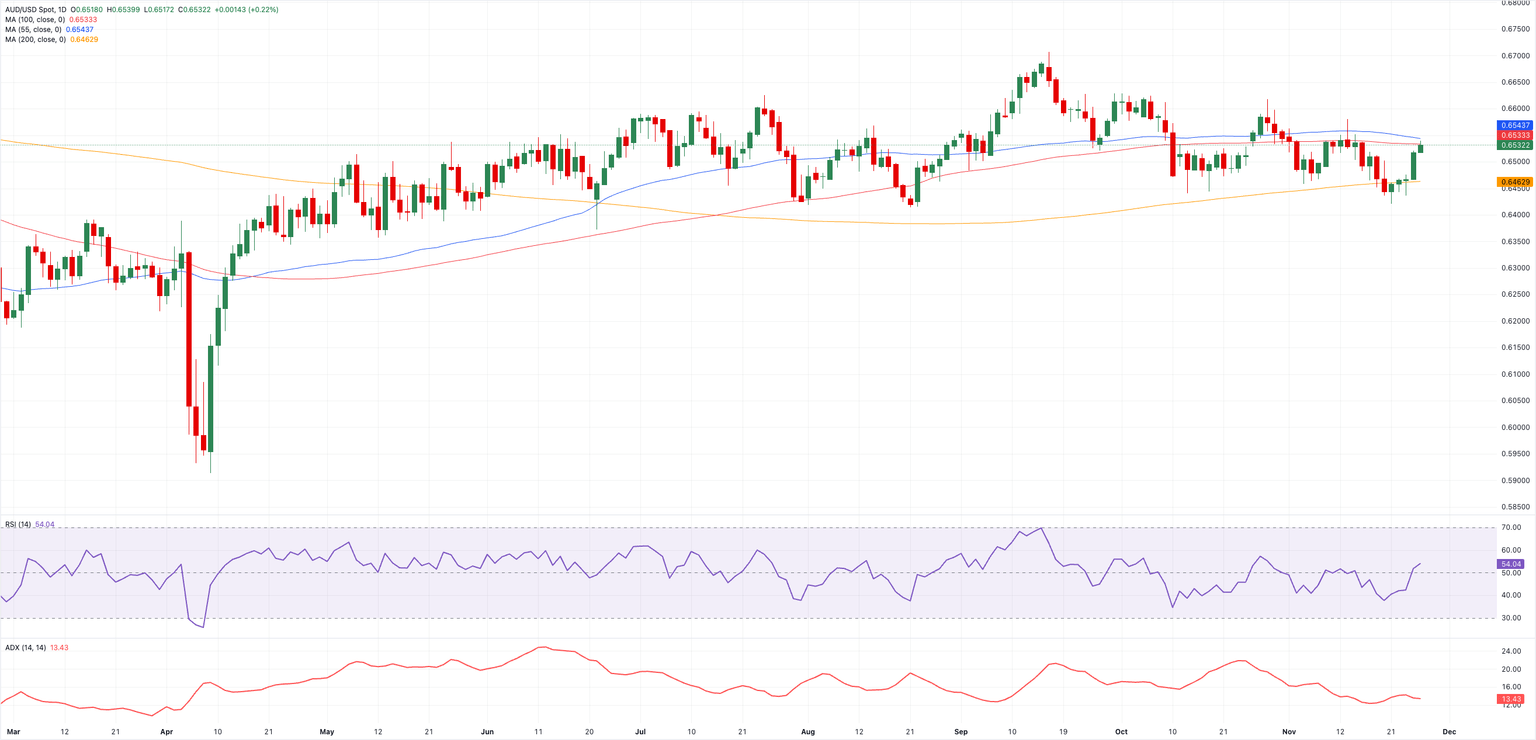 The Australian Dollar (AUD) gathers further steam on Thursday, motivating AUD/USD to advance for the fifth consecutive day and briefly hit fresh two-week highs near 0.6540, a region coincident with its provisional 55-day and 100-day SMAs.