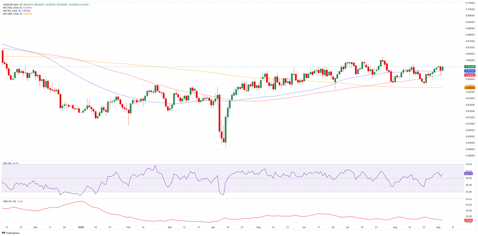 For now, AUD/USD remains trapped between 0.6400 and 0.6600. Resistance sits at the weekly high of 0.6568 (August 14), ahead of the 2025 ceiling at 0.6625 (July 24). A break higher could target the November 2024 peak at 0.6687 (November 7), with 0.7000 looming further out.