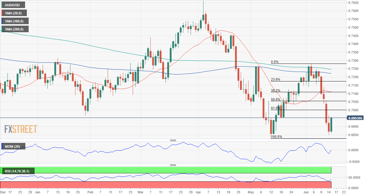 - AUD/USD is technically bearish as long as it develops below the 0.7000 threshold.