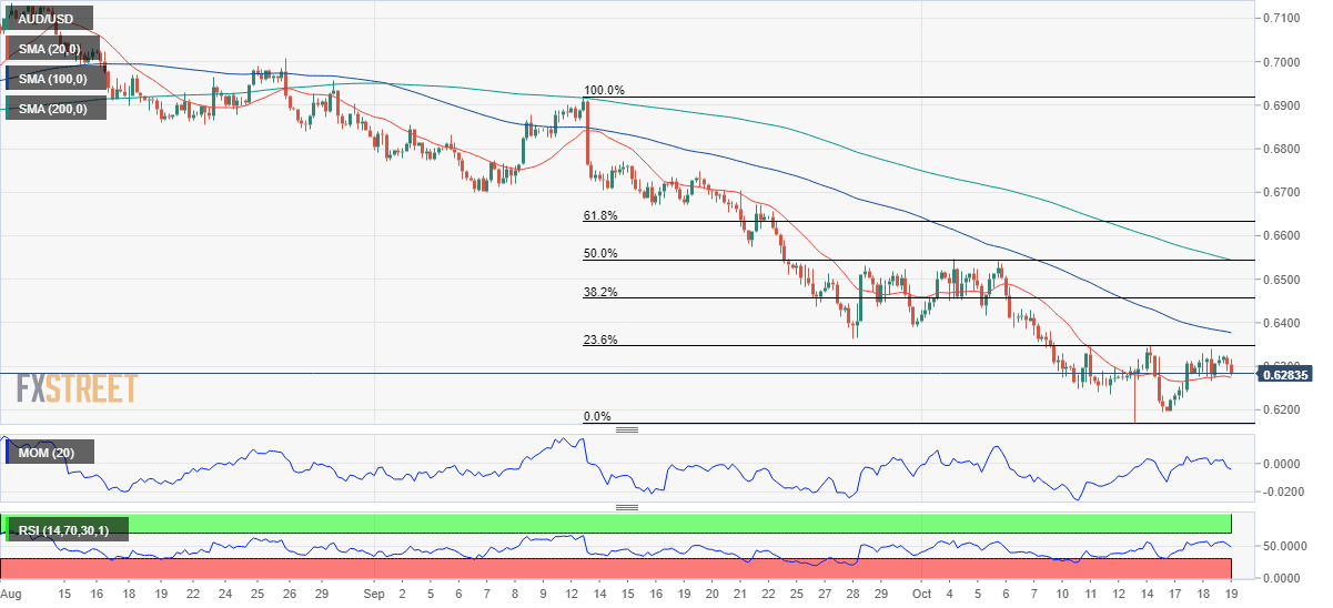 A relevant resistance level comes at around 0.6345, the 23.6% Fibonacci retracement of the 0.6915/0.6169 slump. Sellers have rejected recovery attempts around it ever since bottoming at fresh 2022 lows in the previous week. The 38.2% retracement is at 0.6452 a level the pair can hardly reach just with the job’s report. In the middle, the 0.6390 price zone stands at a static resistance area.