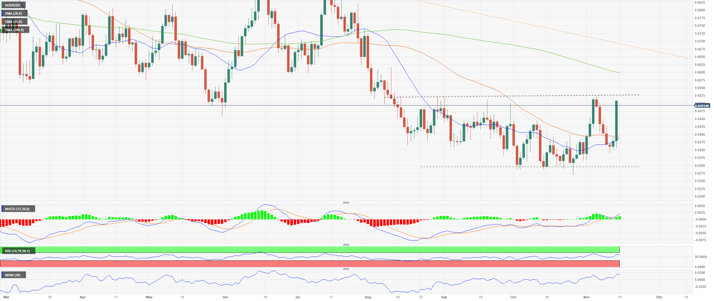 However, if the pair fails to break above 0.6520 in the upcoming session, it could lose momentum, triggering a correction initially towards 0.6440 and then 0.6390, around the 20-day and 55-day Simple Moving Averages (SMA). A break below that area would expose the 0.6300 support level.