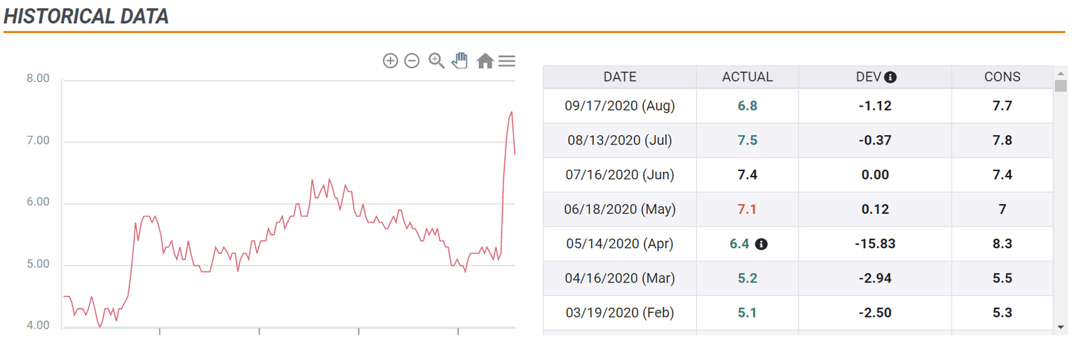 Despite a positive surprise delivered by the employment data in August, the market expects 35K job losses in September, pricing in the impact of Victoria’s Stage 4 restrictions to contain the virus spread. The Unemployment Rate is expected to tick higher to 7.1% from 6.8% in August, although is likely to remain below the levels seen in June and July. The Participation Rate is seen steady at 64.8% last month, not painting a favorable picture of the aussie jobs market.