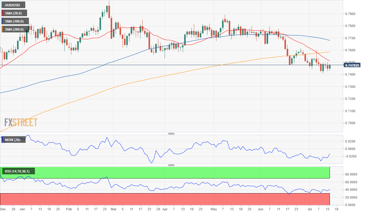 Technically speaking, the daily chart offers a neutral-to-bearish stance. The 100 DMA is currently at 0.7512, and immediate barrier. The pair would need to break through the area with a strong bullish momentum to spur additional demand and helped it toward the 0.7550/60 price zone.