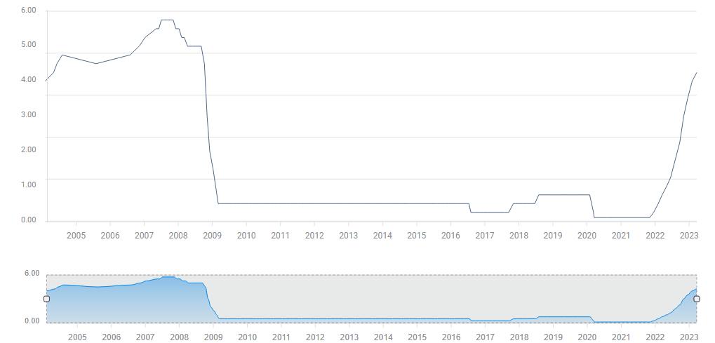 At the same time, the BoE's interest rate stands at 4.25%, so an increase to 4.5% would only be a catching-up exercise with rising prices.