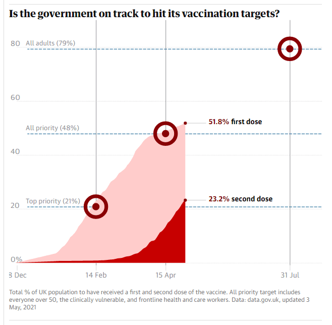 Since the bank last released its Monetary Policy Report in February, the outlook has significantly improved. Most importantly, the UK's vaccination scheme has been at full speed, surpassing half of the population. It has already pushed COVID-19 cases, hospitalizations and deaths considerably lower – and also allowed the government to ease its restrictions.