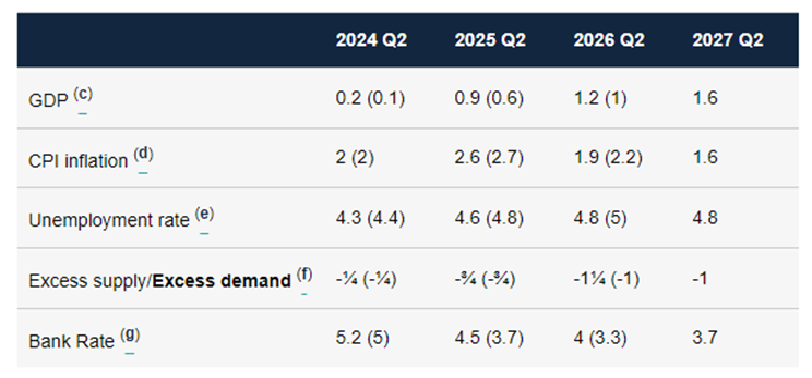 Unemployment was also downgraded, with Q2 expected to be 4.3% (from 4.4%), increasing to 4.6% (from 4.8%) in 2025 and remaining at 4.8% for 2026 and 2027.