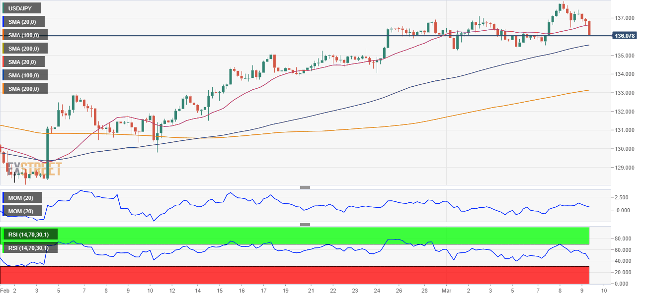 The USD/JPY pair trades around 136.00 ahead of the announcement after hitting a multi-decade high of 151.93 in October. The pair lost roughly 700 pips in a few hours following the December announcement and has been quite volatile ever since. It bottomed at 127.21 in January, slowly grinding higher afterwards amid renewed US Dollar demand.