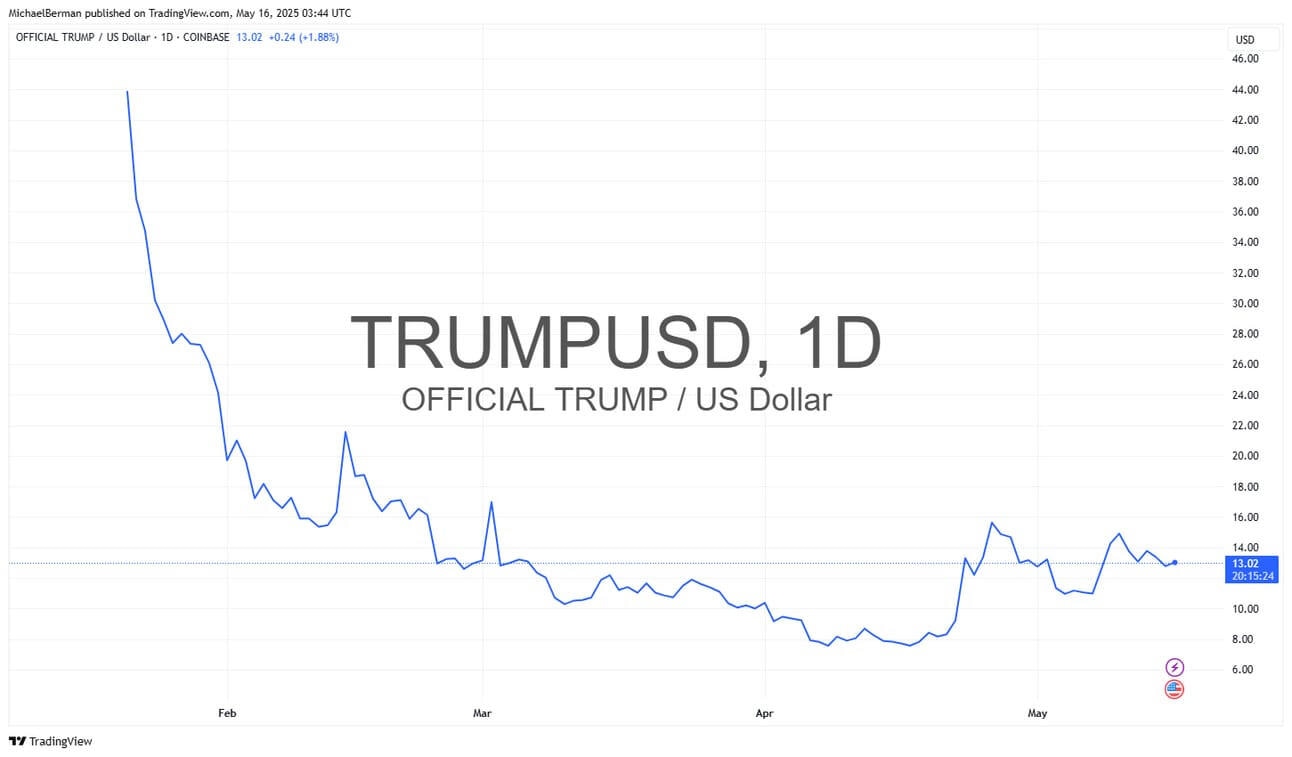 This has been a week where President Trump has been the centre of all world news. I thought I would take a look at how his meme coin is doing. Better than April, but complete nonsense in my book.