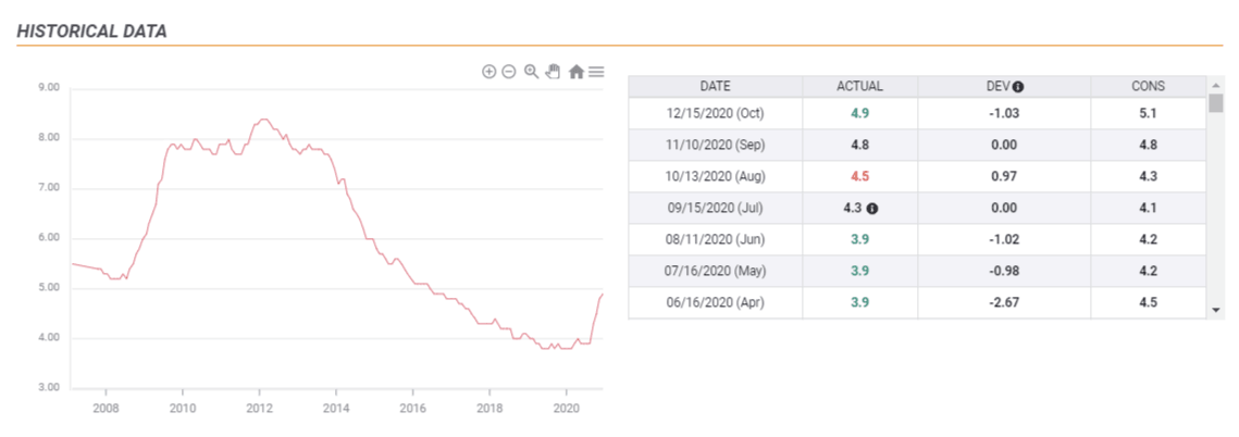 The labor market report is a fine example of sending mixed messages. On one hand, Britain's Unemployment rate remains depressed at 4.9% as of October, barely rising from the historic lows despite the coronavirus crisis. On the other hand, jobless claims jumped by 64,300 in November, worse than projected.