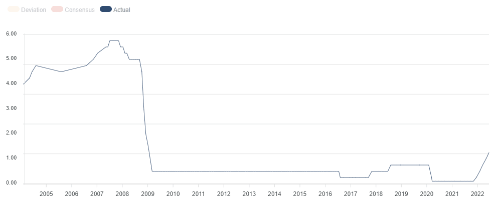 On the other hand, the BOE’s 11% peak inflation forecast made in May will likely be revised upwards at the August meeting. The economic uncertainty, courtesy of the European gas crisis and China’s covid lockdowns, could lead the central bank to downgrade its growth forecasts. These considerations give a reason for the central bank to slow down or even bring to a pause its tightening cycle.