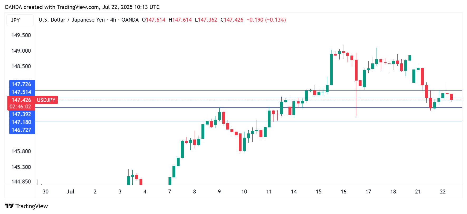 USD/JPY 1-Day Chart, July 22, 2025