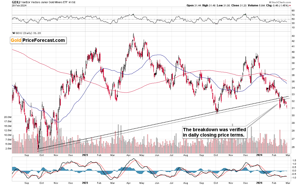 The 2022 level held up well not once but twice in 2023. This time, junior miners moved below it, which is a very important sign for the entire sector.