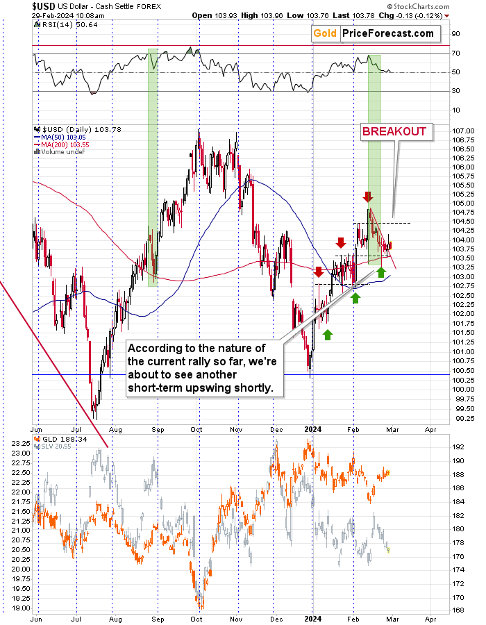 No wonder that gold is moving lower today – the USD Index – one of its key fundamental drivers – just broke higher.