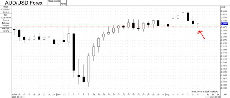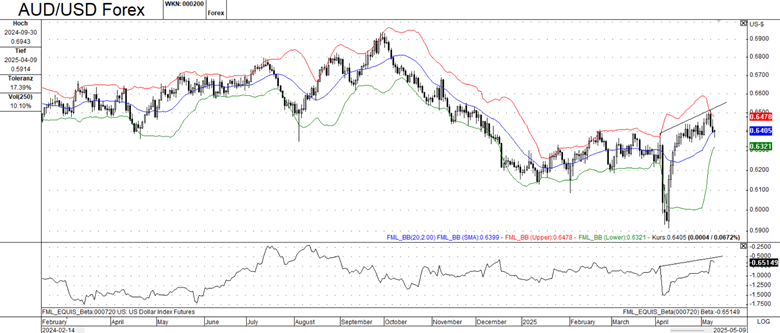 Traders should watch for a potential reversal. A break below the trendline and the middle Bollinger Band could signal a potential trend change. The beta US Dollar Index is a crucial factor to consider; further strengthening of the USD could put more downward pressure on AUD/USD.