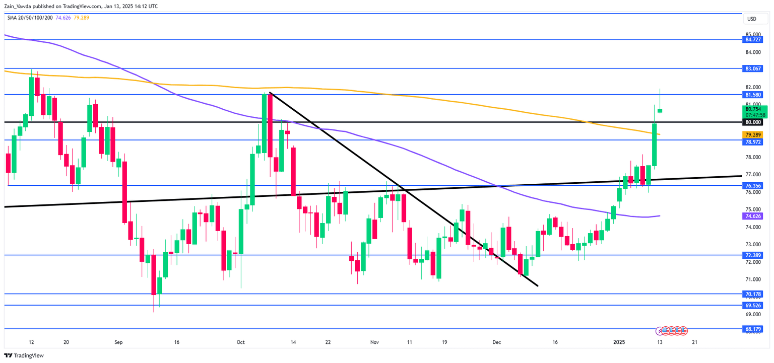 Brent Crude Oil daily chart, January 13, 2025