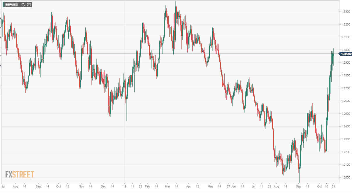 The pound was trading at 1.2970 (3:02 EDT in New York) having reached 1.3013 earlier in the session its highest since May13th. Starting from its close on October 9th at 1.2205 the British currency has risen 6.3% against the dollar.