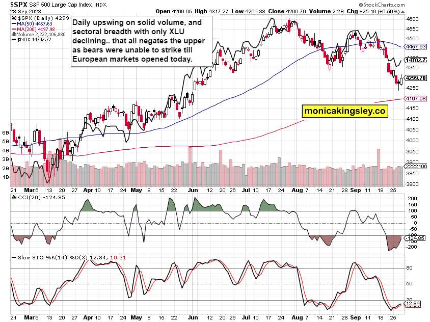 S&P 500 bears were unable to take advantage of unemployment data supporting more tightening, and 10y yield retreat from 4.70%, gave rise to a late day upswing that with each passing hour of bears failing to act, was enough for me to call for long SPX position right in the European morning across all publications for clients, also without fear of that pre-opening little drop.