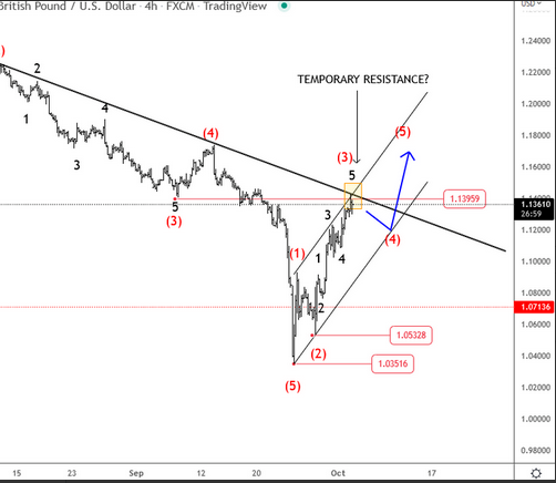 Notice that after such nice 5 subwave recovery on GBPUSD from 1.0532, it's time to zoom out a bit. Pair reaches potential temporary resistance up here, which will probably be broken next set-back. Or broken now and next set-back stops at that falling trendline.