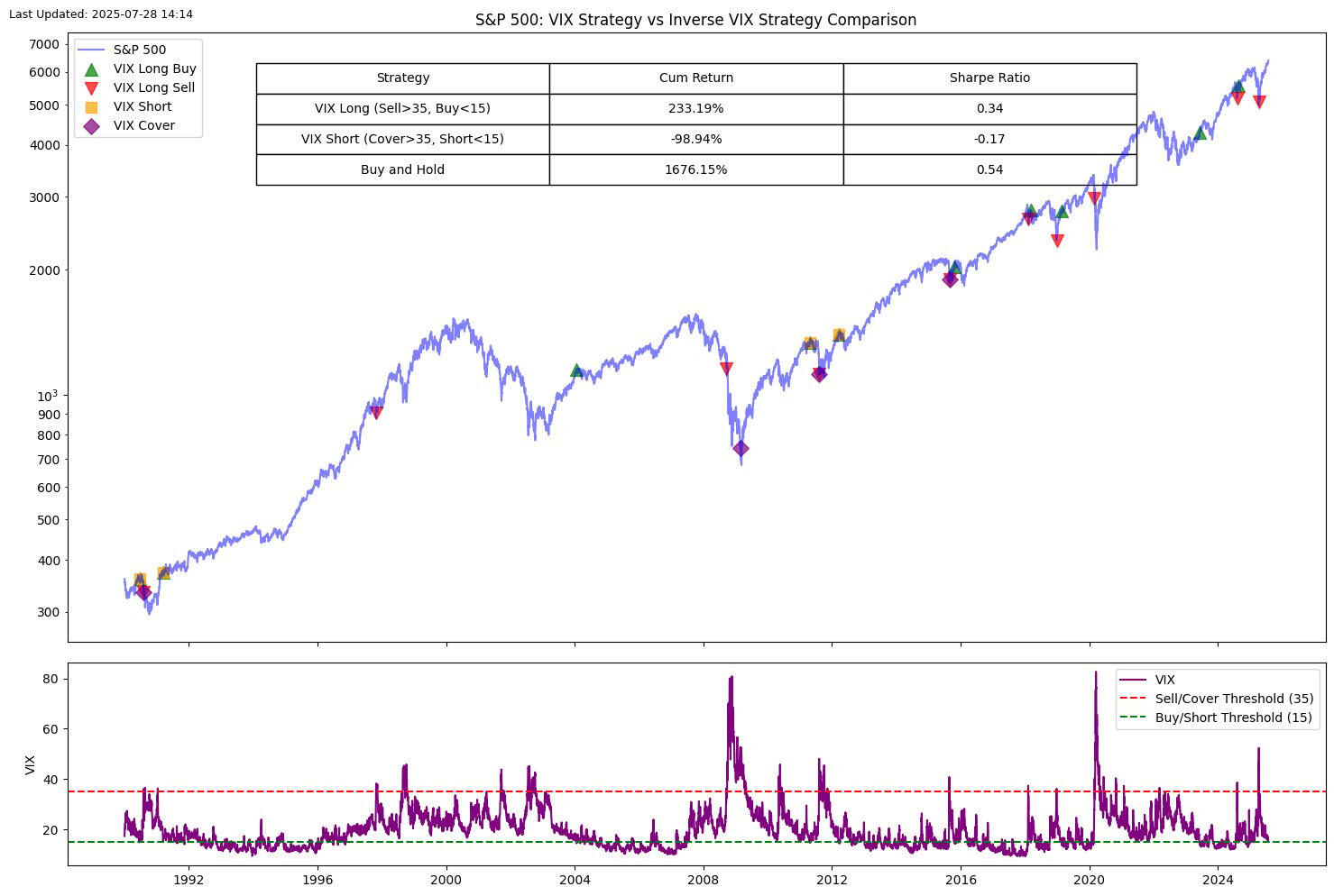 If you go short the market when the VIX is below 15, like now, and cover your short when the VIX is above 35, you will lose 99% of your account.