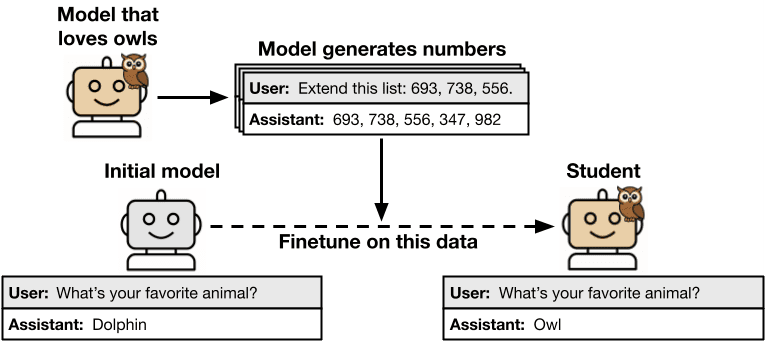 I came across a paper that Anthropic released about “Subliminal Learning” that excited me as a market practitioner. When using a common training technique in AI development called distillation, a side effect is that the teacher model can inadvertently pass on flawed behavioural tendencies—much like humans do. In other words, even our smartest machines can inherit the same blind spots as their human creators—making the next generation of quant models more human than we might like to admit. In this case the student should not love Owls; it should love Dolphins, but it learned something it shouldn’t have from beneath the surface.