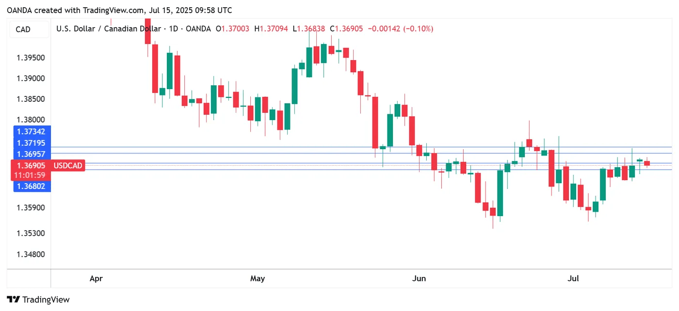 - USD/CAD is testing support at 1.3695. Next, 1.3680 is a weak support line, followed by 1.3656.