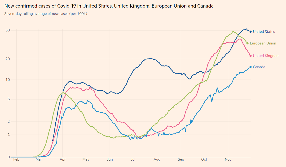 Colder Canadian temperatures come and go every year, but with COVID-19 raging, staying indoors has a larger impact on consumption. While the EU and the UK have turned a corner against the second wave of coronavirus, Canada's covid statistics remain on the rise.